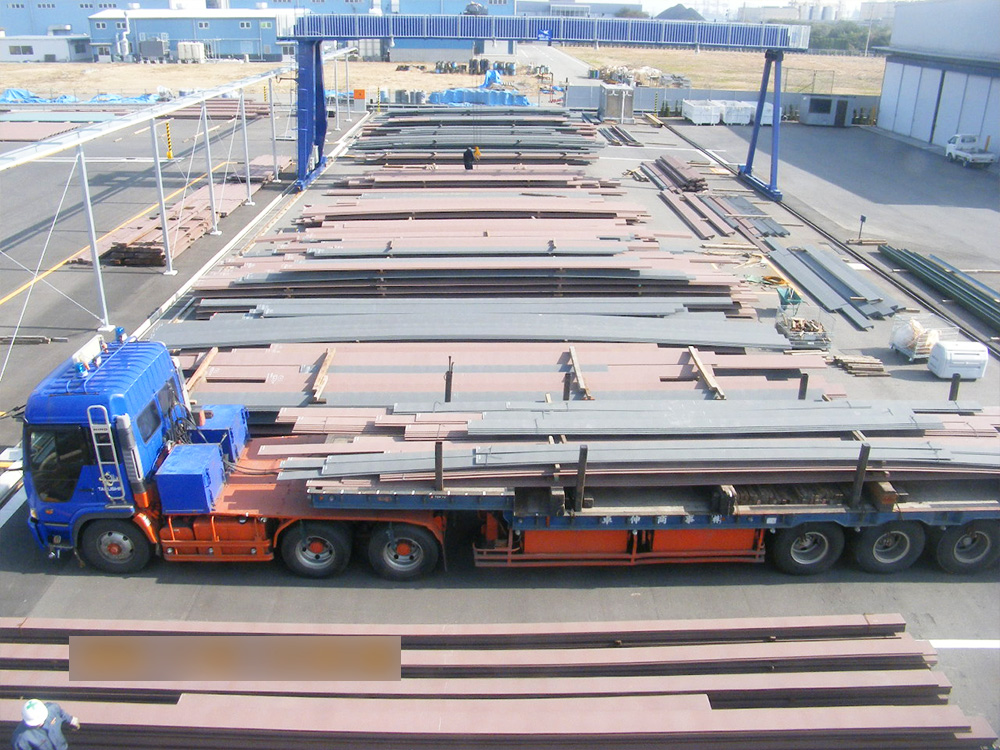 第3工場隣には、鋼材・製品塗装加工品の小ロット一時預かりから長期大量保管が可能、また陸上・海上輸送も行える大型鋼材ストック基地がございます。